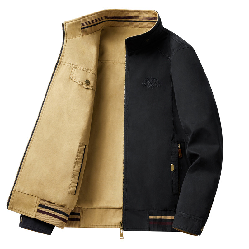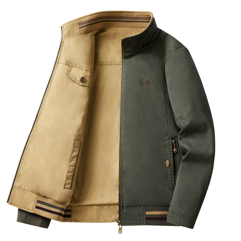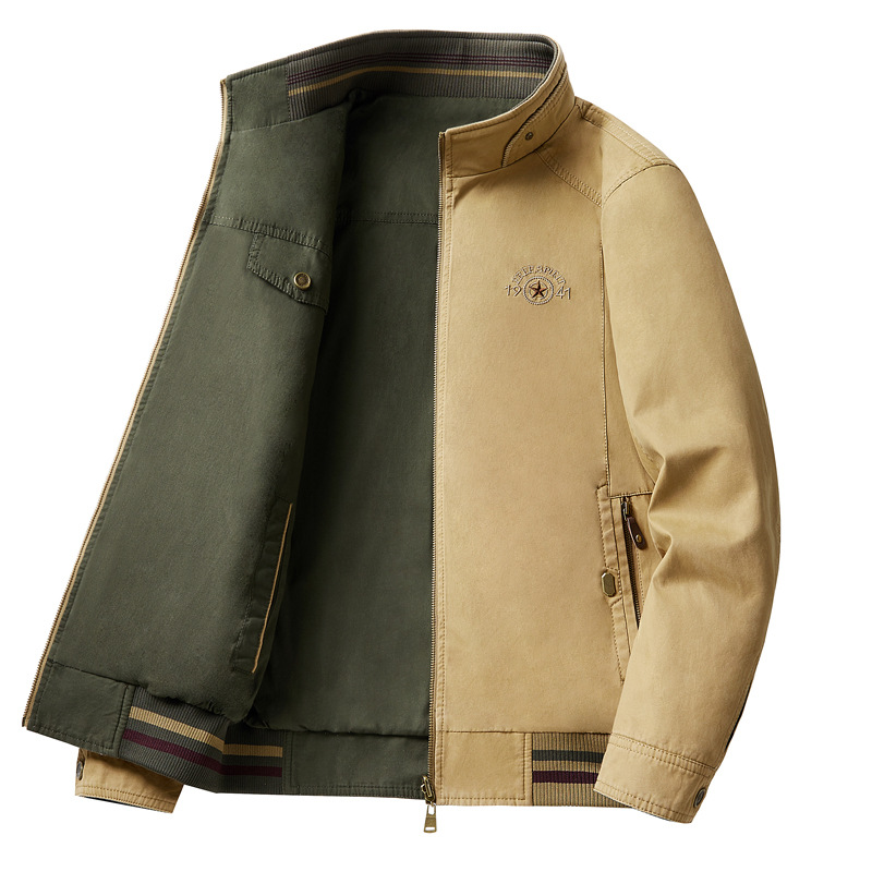 2024 Spring and Autumn Double sided Men's Casual Stand up Collar One Two Piece Jacket Pure Cotton Washed