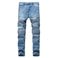 Men's Clothing street BIKER JEANS trendy brand locomotive men and women personality wrinkled slim feet pants elastic jeans