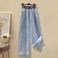 Women's clothing New Fashion Fashionable Flesh-covering Slimming Top High-waisted Jeans Two-piece Set